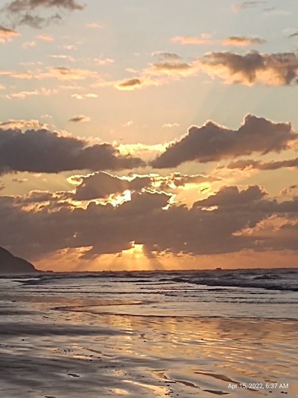 A glória do Sol matutino, por trás de nuvens. Como trajes, como véus que escondem, que revelam, que revelam escondendo, que prometem.