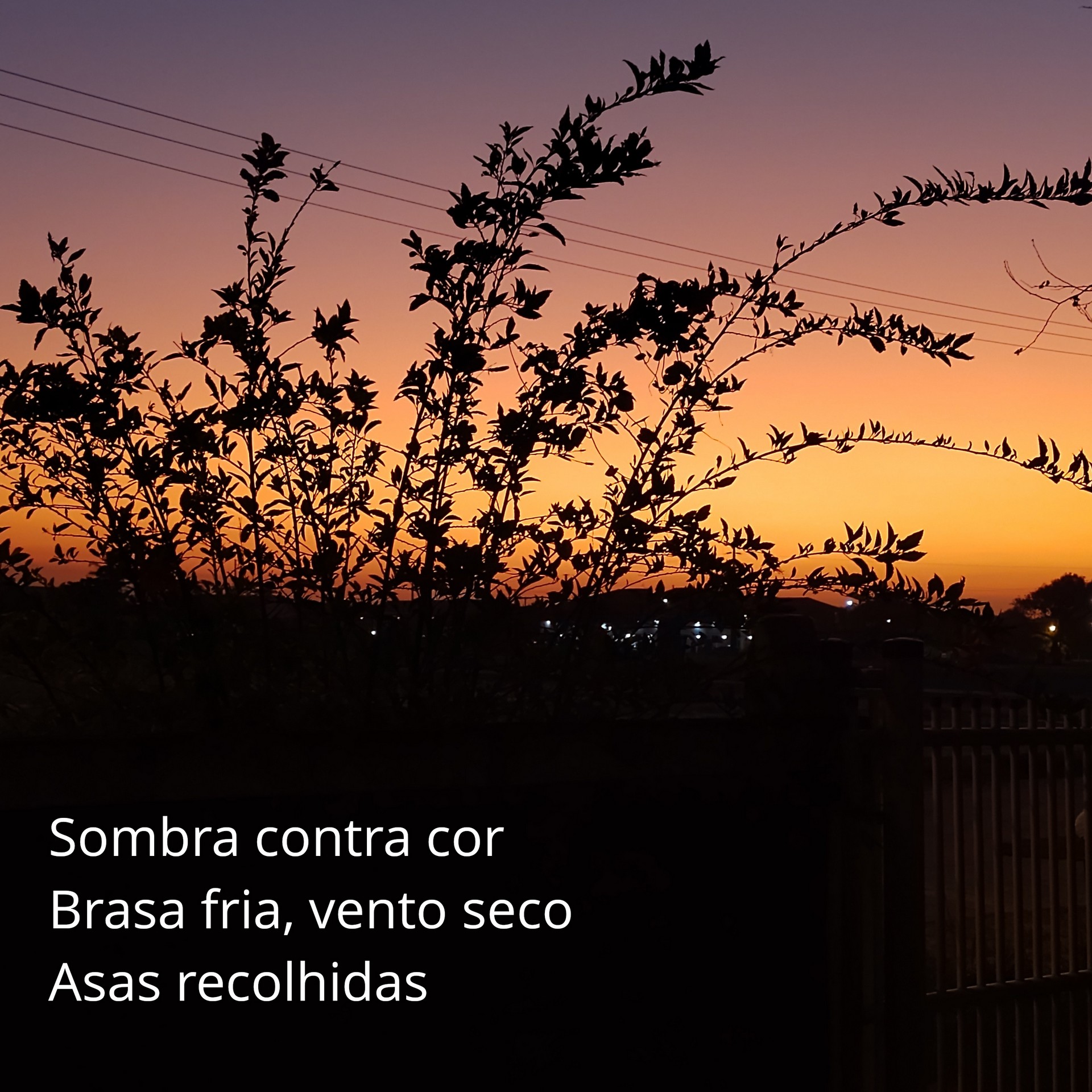 Sombra contra cor Brasa fria, vento seco Asas recolhidas.