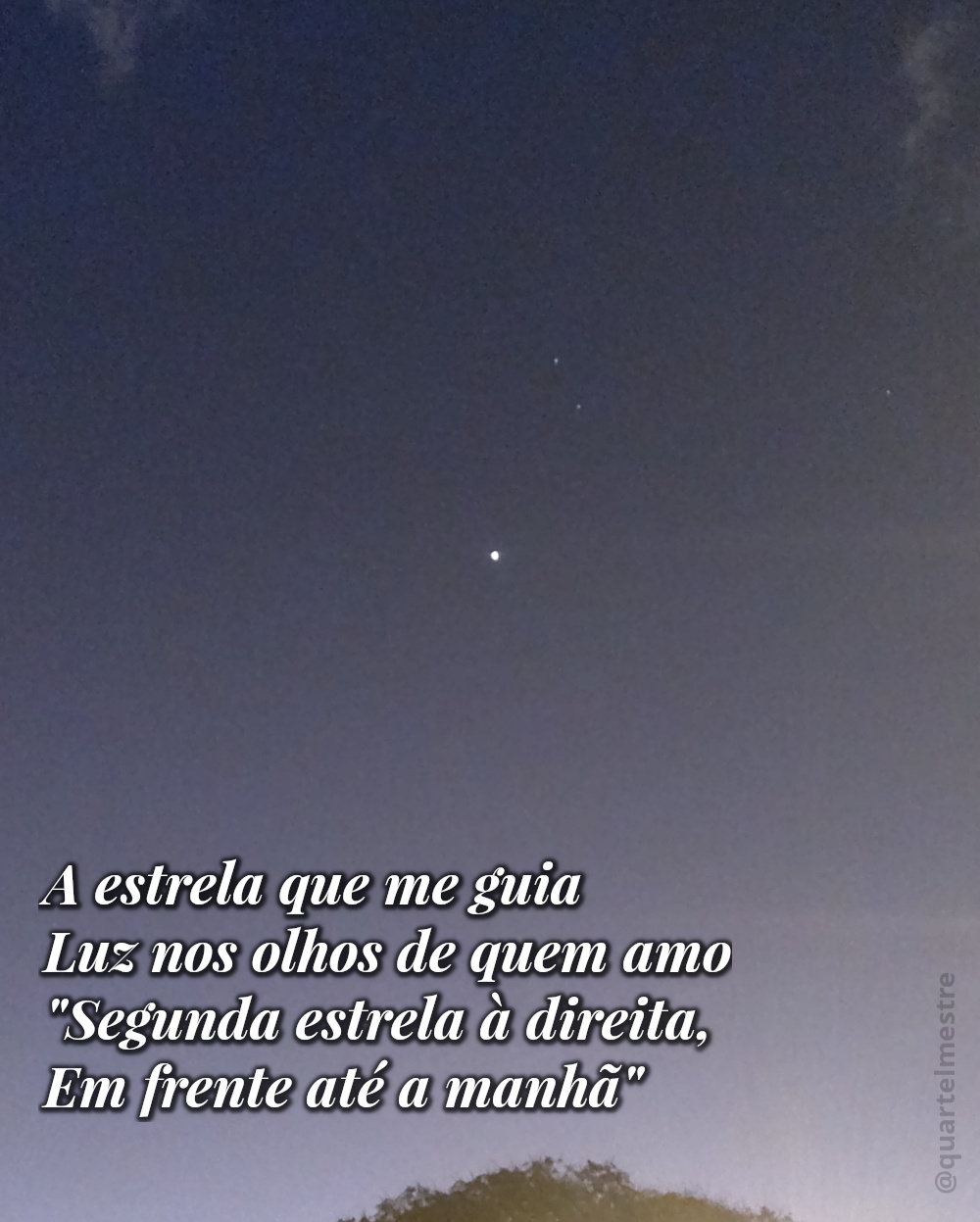 A estrela que me guia Luz nos olhos de quem amo "Segunda estrela à direita, Em frente até a manhã"