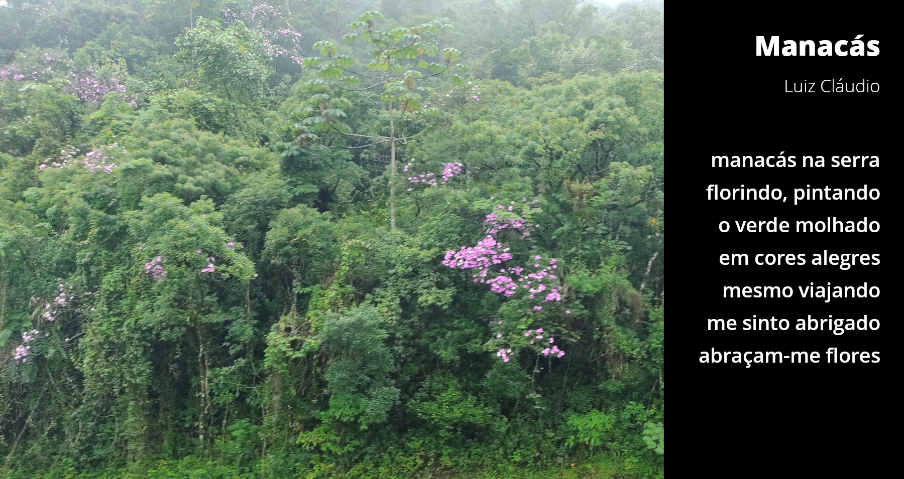 manacás na serra florindo, pintando o verde molhado em cores alegres mesmo viajando me sinto abrigado abraçam-me flores